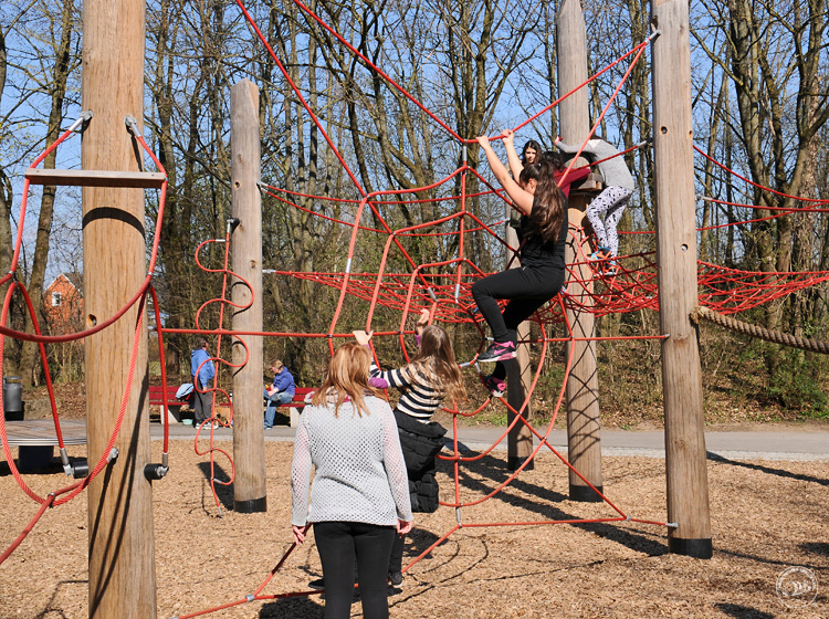 Climbing together, moving hand over hand and balancing requires skill and caution. Meeting someone on the swaying ropes makes it necessary for you to coordinate with them. How are we now going to get past or go around each other on this rope? Do you want to, shall I, or shall we try it together? Moving around or going straight ahead without touching the ground offers the possibility of endless role plays.Recommended For